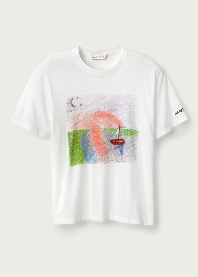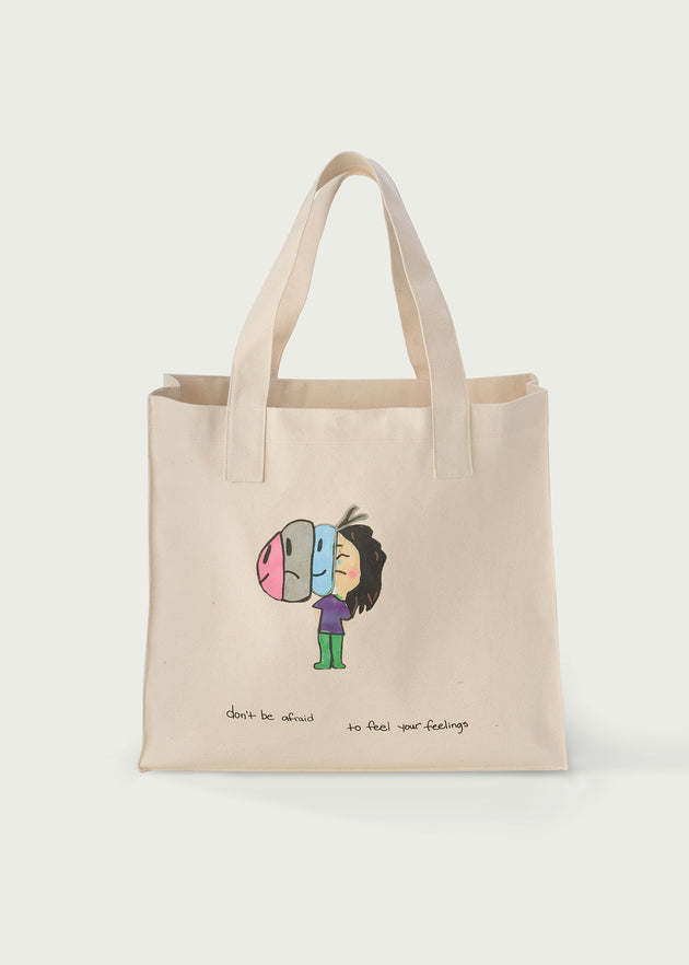 Over the past three years, we have built a partnership with Kids Help Phone, creating products in an effort to raise money for the amazing work they do for mental health in youth every single day. This year, Kids Help Phone has launched a new campaign Feel Out Loud and we thought it would be a great way to take our partnership one step further by including kids within our community to illustrate what Feel Out Loud means to them. The result is a one-of-a-kind collection, featuring t-shirts, socks and tote bags, created in collaboration with kids to show that it's okay to Feel Out Loud.