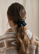 The Leona elevates the classic scrunchie by reimagining it in sumptuous black nappa leather. Every Ellie Mae scrunchie is made from repurposed fabric to help reduce textile waste