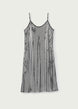 Our Natalie dress is a daring mini slip dress. This silver disco sequin fabrication demands movement. Adjustable straps and a silky lining ensure comfort. Midnight black piping details throughout.