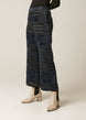 The Nicole Pant is hand-crafted from burnout velvet sourced from a boutique fabric producer in Italy and sewn in the Ellie Mae Toronto studio. Front button and zipper closure, and a wide ankle length leg create a contemporary silhouette. The unique pattern is created through technical fabric innovations in shades of blues and greys.