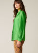 Two details set this blouse apart: the silk wool seersucker fabric and multi-coloured gum drop buttons. The unique fabric—sourced from Italy— adds a touch of vintage flair. The elongated lapels and slightly shirred cuff add a 70s touch.