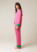 This silk jacquard pyjama pant with an elastic waist and drawstring is made from supple jacquard fabric sourced from Italy. The wide-leg pant features a fun complimentary colour cuff.