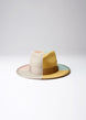 - 100% beaver felt hat in a patchwork of Mustard/Nude/Gardin Vert/New Grey