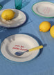 Playful and witty, Laetitia Rouget’s “Open for Dodgy Business” dessert plate is hand-crafted and painted in Portugal. Featuring a cheeky red slogan with a minimalist blue trim, this plate brings humor and charm to your table. Thoughtfully designed with contemporary flair, it’s perfect for those who appreciate unique, artistic tableware that makes a statement.