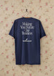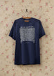 1970s vintage running t-shirt. Short sleeve navy blue crewneck tee in a vintage fit. Featuring a unique graphic designed of runners on the front and a tag line on the back. Unisex style.