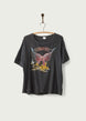 Rare 1970s vintage The Eagles t-shirt. Short sleeve faded black t-shirt in a worn-in fit. Featuring a graphic of the Eagles logo screen printed on the front. This style was called the Parking Lot tee as fans in the 70’s would create their own graphics of the concerts and sell the tee’s just outside of the venue. Today they’re considered to be quite rare to some collectors. Unisex style.