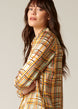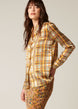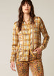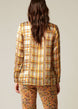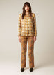 This shirt, made of delicate pebble silk, takes inspiration from prints of the 70s. The checkered pattern in autumnal colours captures the Ellie Mae style through careful tailoring and a distinct pattern. Light shoulder pads and a straight fit add a refined touch. Fabric sourced from Italy.