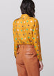 Ellie Mae's classic Gia blouse returns for AW21 in a cheerful retro dotted print. Small shoulder pads add a touch of structure to this polished blouse, which is made from sumptuous honey gold silk sourced from England.