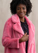 Add a pop of colour to your life with this impossibly plush faux fur coat in a cheerful shade of bubblegum pink. Lined in silky smooth satin, this optimistic coat is sure to turn heads wherever you go.