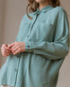 An oversize, dolman-sleeve button down that can be worn on its own or layered on top of a t-shirt. The Kane is cut loose and drapey for maximum comfort and features an unconventional combination of horizontal and vertical stripes on the garment for its touch of Ellie-ism.