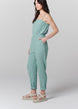A sleek yet comfy summer jumpsuit made of silky sea green viscose fabric. The tapered legs create a sleek silhouette while the elasticated waistband allows for plenty of movement. Adjustable shoulder straps bedecked with vintage bronze beads allow for a customizable fit. Whether you're wearing it to the beach or on a date night, the Kendra will make you feel as great as you look.