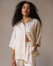 A carefree button-down cut from 100% silk checked plaid. Whether you're at ease or on the go, it's oversize fit allows plenty of room for movement. Wear it on its own like Ellie or paired with the matching Jack trousers for a head-to-toe look.