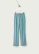 Our signature wool pant from AW21 has been reinvented in a silky soft fabric that’s perfect for Summer. The breezy pant, in a statement turquoise stripe, fits like a trouser before cascading to a soft flare. Signature SS22 retro buttons that emulate waves add a touch of the ocean. Pair with the Marvin button-down for a perfect set.