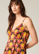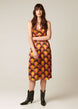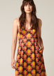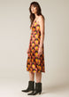 Fashioned in a 70s-inspired colour palette and repeating floral pattern, this women's dress lands just below the knee and features a vintage dropped bust design. The charmeuse weave of the silk makes the finish extra shiny and soft. Loose and flowy fit with a novelty trim neckline and adjustable straps. Made using luxurious silk from Italy.