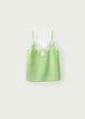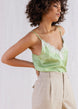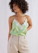 This 100% silk tank is flirty and fun in a retro polka dot fabric. The green and white colourway charms. While the delicate lace trim continues the vintage feel. Adjustable straps ensure this delicate tank is perfect for everyone.