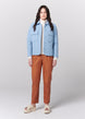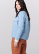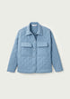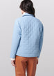 This lightweight quilted jacket is the epitome of Spring style. The interior bindings are printed, providing an attention to detail that repeats throughout the jacket. Infinitely comfortable, with a slightly boxy cut, this sky-blue jacket stands out as a classic piece with a modern edge.