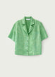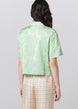 This cropped short sleeve blouse features the perfect boxy silhouette. The floral Jacquard fabric in a jewel-tone green adds to the blouse’s retro charm. While flower-shaped buttons and a notch collar infuse the piece with a dose of fun and a carefree attitude. A key example of an elevated vacation must-have.