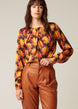 A floral print silk shirt made in Canada, the Naomi women's blouse is a staple of the Ellie Mae FW22 collection. The cascading silk fabric is sourced from Italy and features a flattering pleated drape keyhole neckline and shoulder pads for an extra touch of refinement.