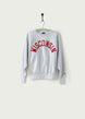 1990s vintage Champion Wisconsin University logo sweatshirt. Long sleeve grey cotton vintage crewneck sweatshirt in a relaxed fit with school logo letters on the front. Unisex style.