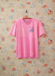 1990s vintage Clam Box Store t-shirt. Short sleeve hot pink crewneck tee in a vintage fit. Featuring a store logo graphic on the front. Unisex style.