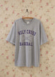 1990s vintage Holly Cross Baseball t-shirt. Short sleeve grey crewneck tee in a vintage oversized fit. Featuring a logo graphic on the front. Unisex style.