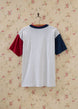 1990s vintage Wisconsin sailing t-shirt. Short sleeve grey crewneck tee in a vintage fit. Featuring a graphic of a sail boat on the front and colour blocked sleeves. Unisex style.